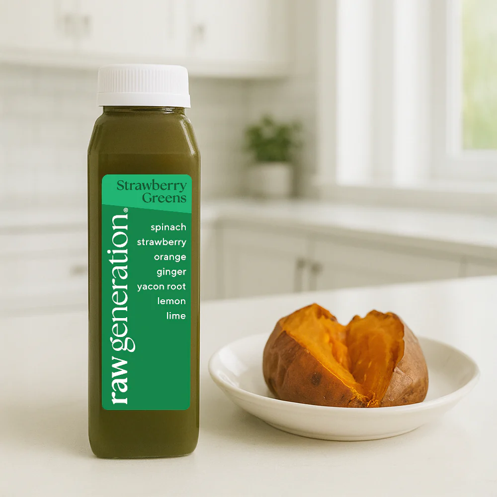 For your second juice, go for a non-green option. Baked sweet potatoes are also a great addition—enjoy them with your juice or between bottles for extra nourishment.